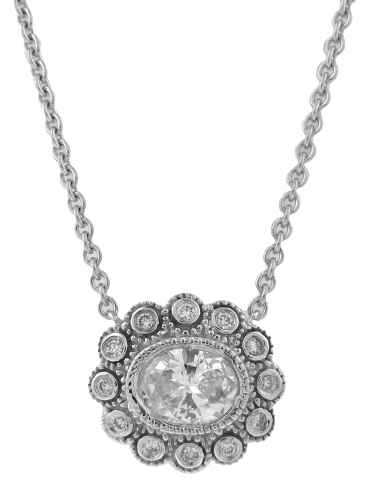 14kt white gold oval diamond pendant with chain.