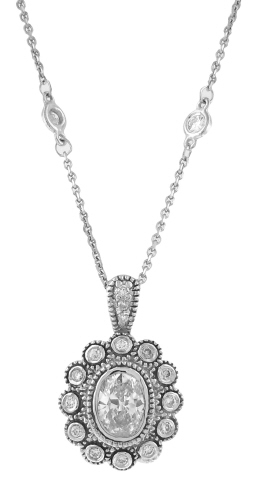 14kt white gold bezel set oval diamond pendant with diamonds by the yard chain
