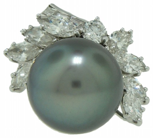 Platinum Tahitian pearl & diamond ring