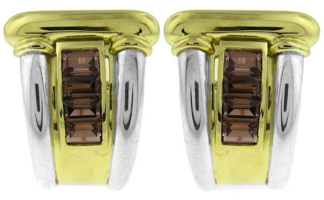 18kt two-tone La Nouvelle Bague hoop earrings with Rhodalite Garnet.