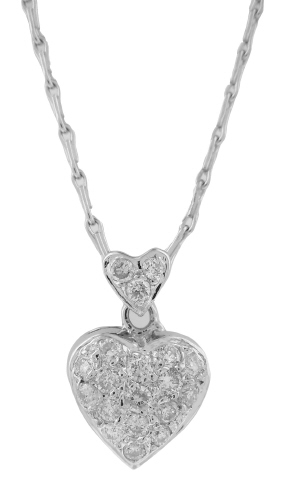 18kt white gold diamond heart pendant with 14kt white gold 16" chain