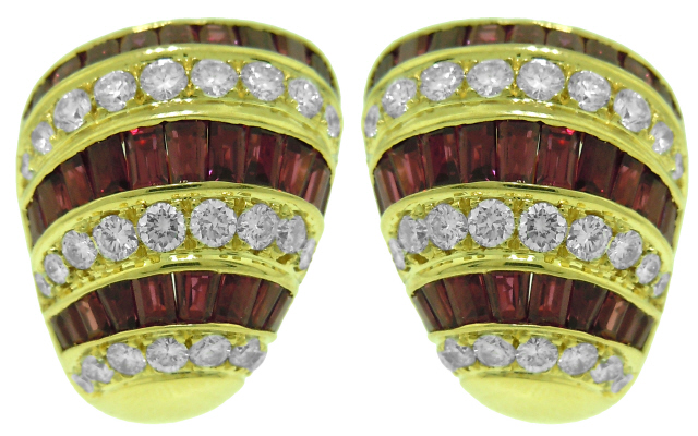 18kt yellow gold ruby and diamond earrings