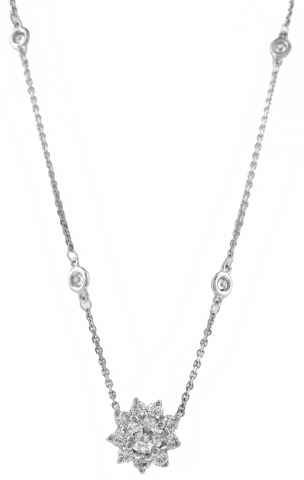 14kt white gold diamond halo pendant with diamond chain