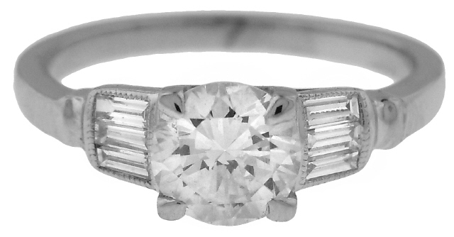Round Diamond .76ct L-VS2 EGL Report #US 312275205D Baguettes 6/0.19tw G-H/SI