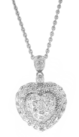 14kt white gold pave diamond heart pendant with chain