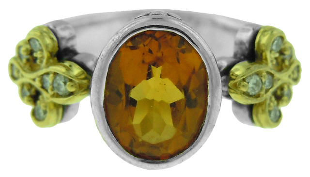 Silver and 18kt yellow gold Lagos Caviar oval citrine and diamond ring