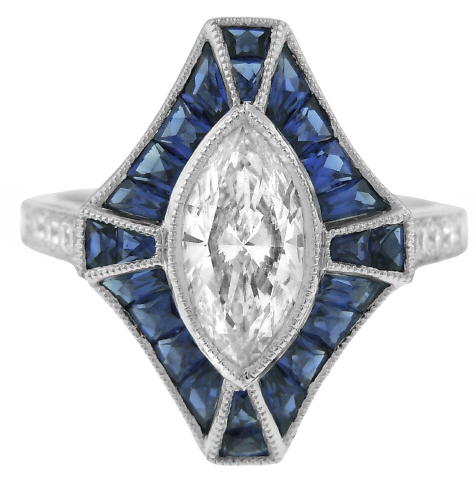 Platinum diamond and sapphire ring.