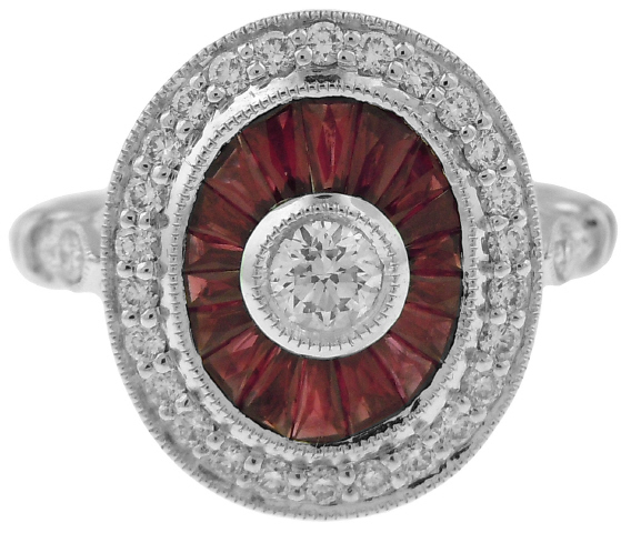 Round diamonds 29/0.43tw G-H/VS2-SI1 Rubies 20/1.45tw