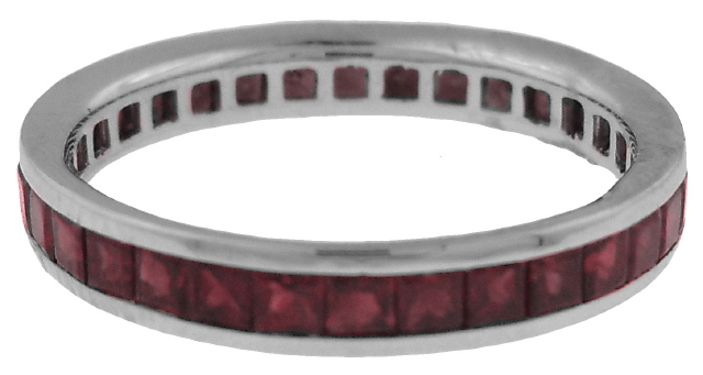 Platinum channel set square ruby eternity band
