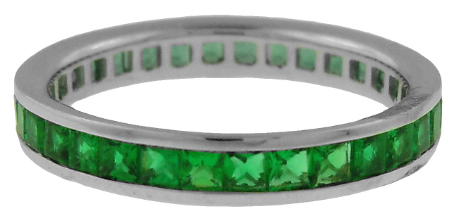 Platinum channel set square emerald eternity band