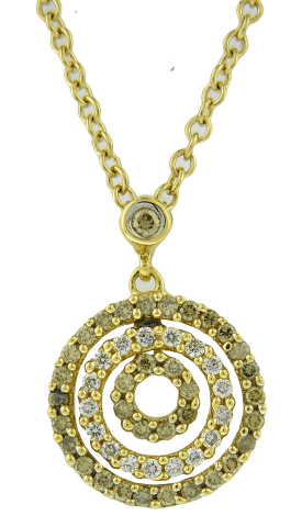 14kt yellow gold concentric diamond circles pendant with chain