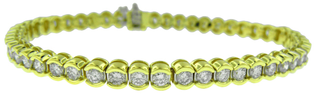 18kt yellow gold half-bezel set diamond tennis bracelet 7 1/8"