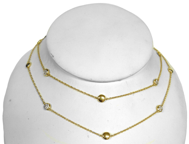 18kt yellow gold 34" chain with diamond beads.