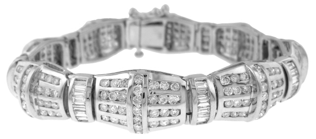 Round diamonds=248/7.50tw+/- Baguette diamonds=48/2.50tw+/- Total diamonds=296/10tw+/- H-J VS2-SI2