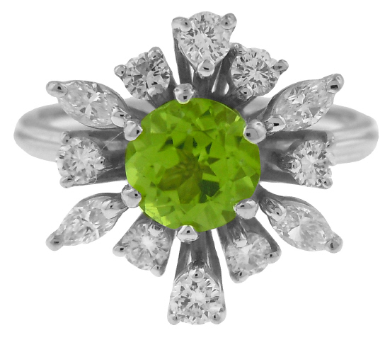 Peridot=1/.87ct Diamonds=12/.55tw+/- H-I VS
