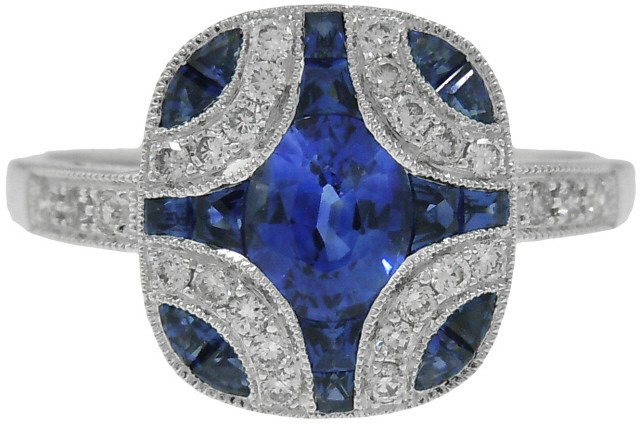 18kt white gold sapphire and diamond ring.