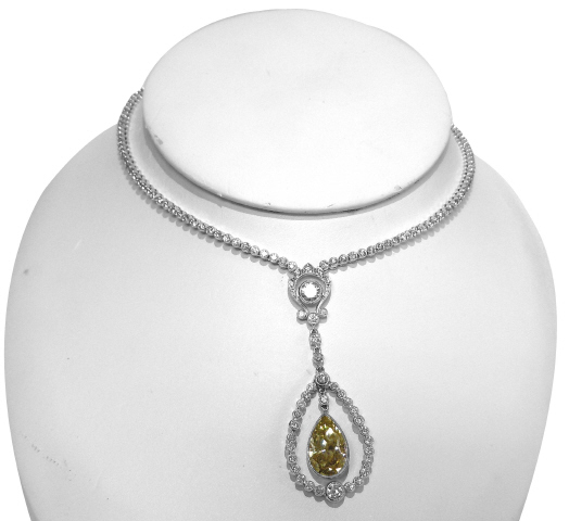 Pear Shape Diamond 4.01ct Fancy Brownish Yellow/SI1. GIA Report #13374754 Round Diamonds 198/6.55tw G-H-I/VS (Larger Diamonds 1/.49ct, 1/.18ct, 1/.11ct) EGL Report on complete necklace #US 314359001D