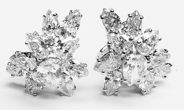 Platinum pear shape & marquise diamond cluster earrings.