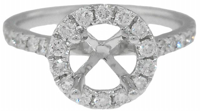 18kt white gold diamond halo ring semi-mount for 1 carat center