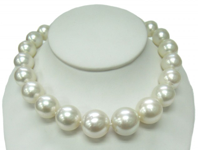 Pearls=31: 17.6mm center-12.1mm (17.1, 17.3, 16, 15.5) 18kt white gold clasp D=1.33tw+/- F-G VS2-SI1