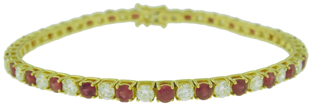 18kt yellow gold 4-prong alternating diamond and ruby tennis bracelet