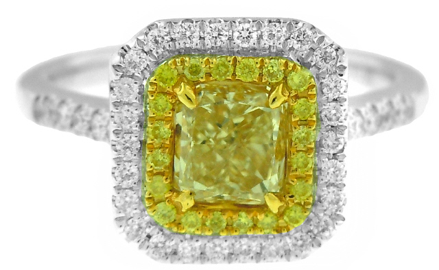 Fancy Yellow Radiant Diamond .92ct Round Yellow Diamonds 20/.08tw Round White Diamonds 30/.16tw