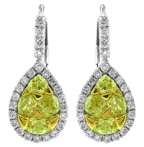 18kt two-tone fancy yellow diamond earrings with eurowires
