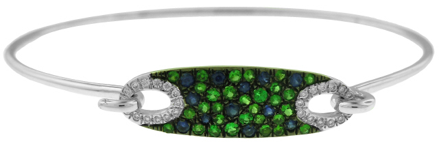 18kt white gold green garnet, sapphire and diamond bangle bracelet.