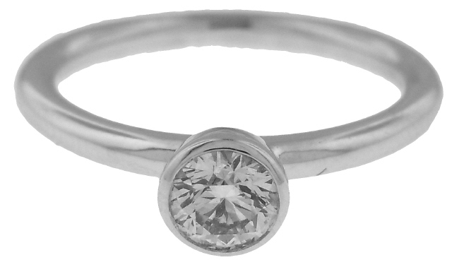 18kt white gold bezel set diamond ring.