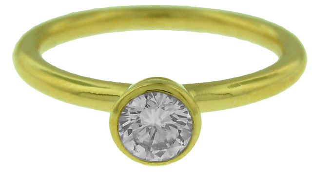 18kt yellow gold bezel set diamond ring.