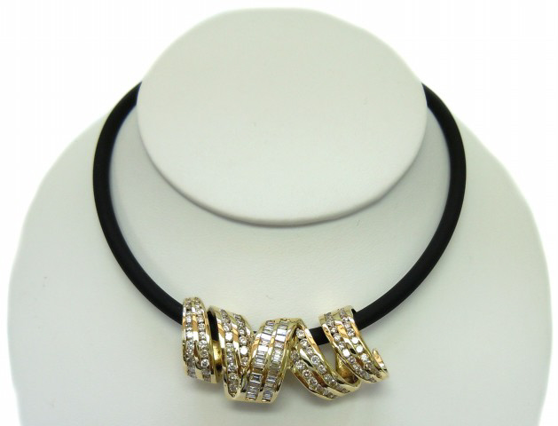 Round Diamonds: 79/2.50tw Baguette Diamonds: 60/2ctw I/SI-2 Black cord lenght 20"