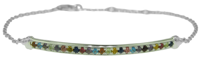 18kt white gold multi-color stone bar bracelet.