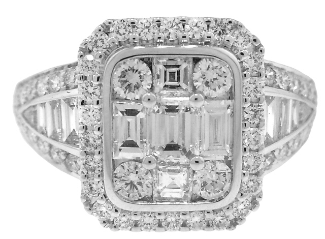 Round Diamonds 54/.69tw G-H/VS2-SI1 Baguette Diamonds 13/.83tw G-H-VS2-SI1