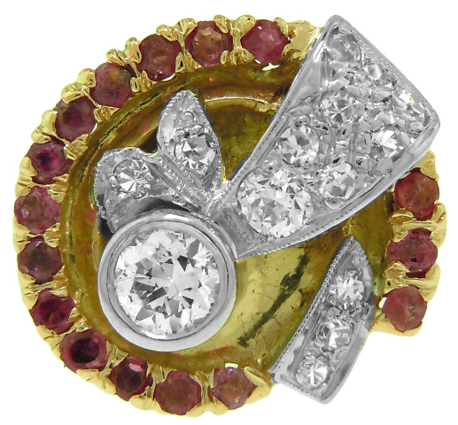 14kt rose gold diamond and ruby ring