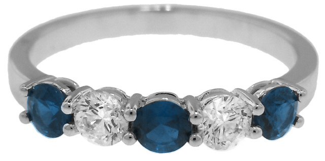 18kt white gold alternating diamond and sapphire half around band