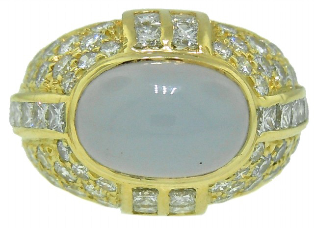 18kt yellow gold cab Chalcedony & diamond ring