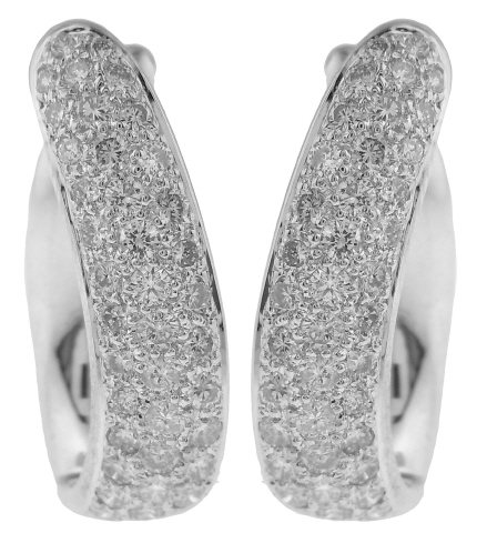 18kt white gold pave diamond hoop earrings.
