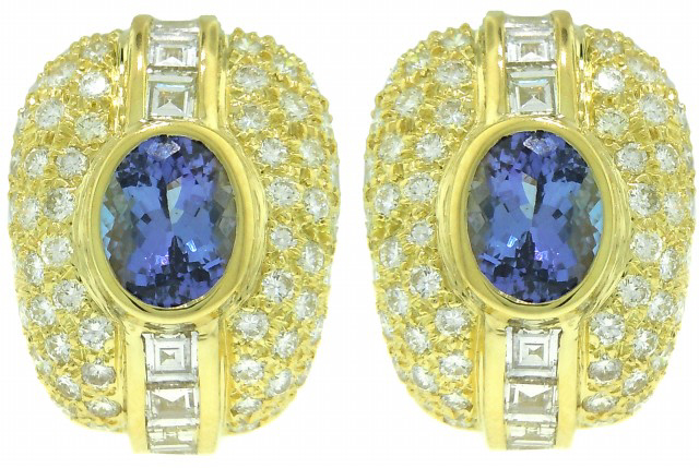 18kt yellow gold Tanzanite & Diamond earrings
