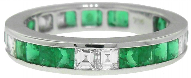 18kt white gold emerald and diamond eternity band