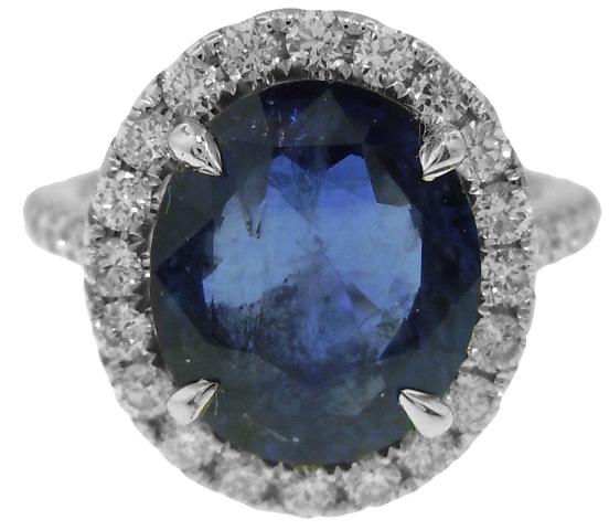 Sapphire=1/4.14cts heated GAL Report GAL201912637 11.15x9.40x4.45mm Diamonds=70/1tw G-H VS