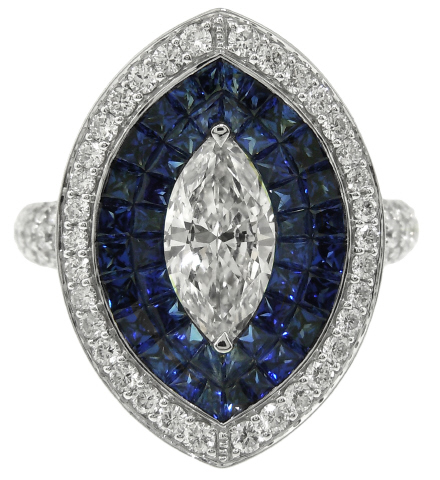 Sapphires 3.50tw Round diamonds 0.93tw F-G/VS Marquise diamond 1.14ct I-VS1 GIA Report#6187828358