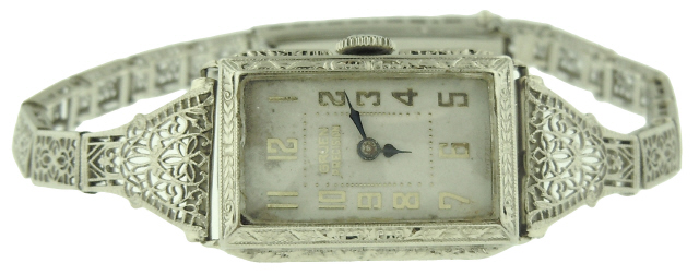 14kt white gold case back 10kt white gold bracelet and frame
