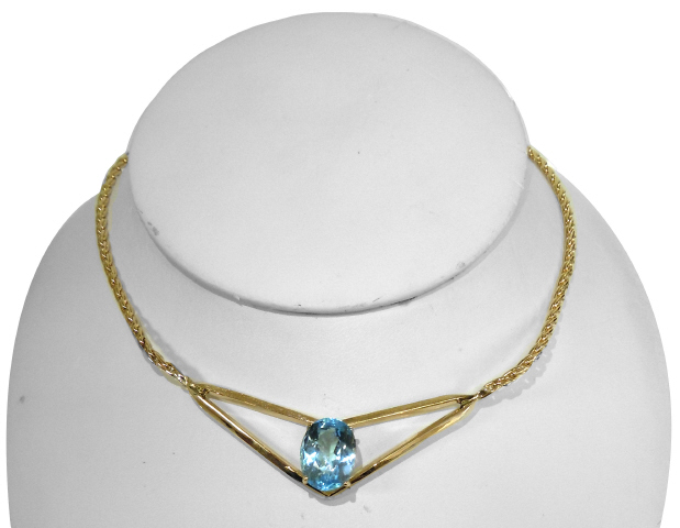 14kt yellow gold blue topaz necklace