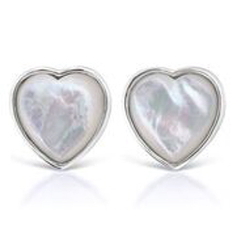 14kt white gold white mother of pearl heart earrings with smooth edge.
