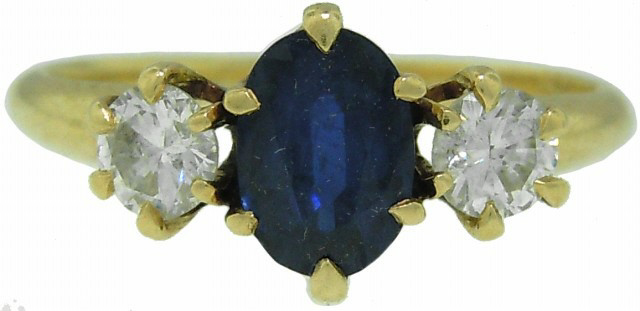 Sapphire: 1/1.03ct Diamonds: 2/.50tw H/I SI-2 c.1950's