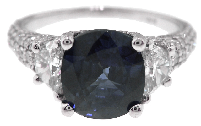 Sapphire=1/3.35cts heated GAL Report GAL201918676 9.05x8.12x5.03mm Diamonds=2/.61tw Diamonds=122/.76tw Total diamonds=124/1.37tw F-G VS