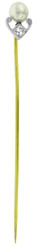 14kt yellow gold pearl and diamond stick pin.