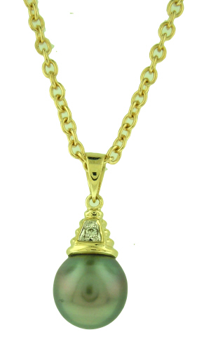 14kt yellow gold gray pearl and diamond pendant