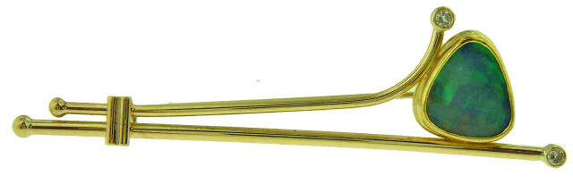 14kt yellow gold opal and diamond pin