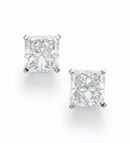 14kt yellow gold princess cut diamond studs 2/2.05tw M color VS-2/SI-1 clarity